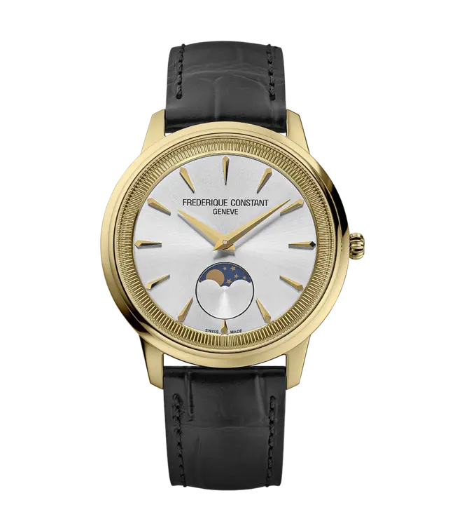 De Classics Moneta Moonphase van Frederique Constant is een tijdloos, verfijnd horloge dat elegantie combineert met een subtiel klassiek karakter. De roestvrijstalen kast van 37 mm heeft een elegante, slanke vorm waardoor het horloge comfortabel onder een overhemd of blouse gedragen kan worden.