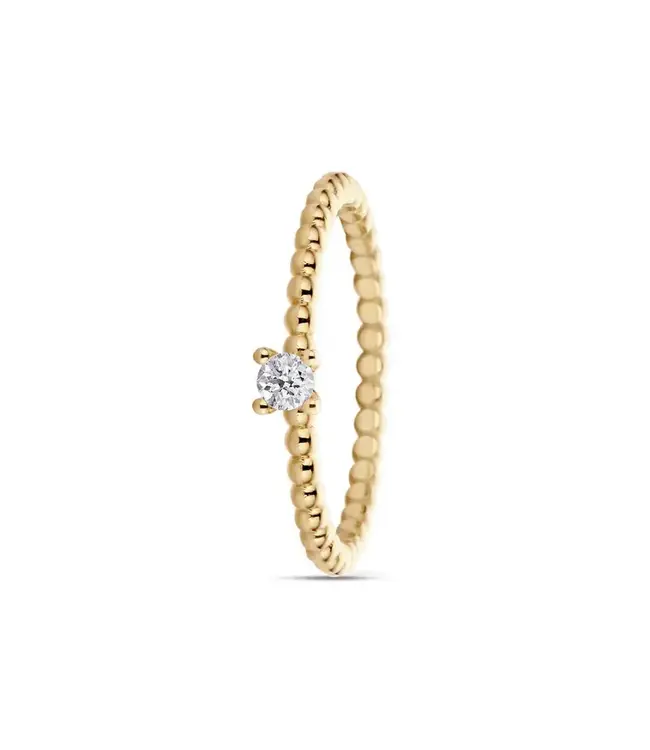 Elegante geelgouden ring van het Nederlandse merk Miss Spring. De ring is gemaakt van 14kt geelgoud en heeft een geslepen diamant aan de bovenzijde. De maat van de ring is 53, maar kan in andere maten besteld worden. Voor meer informatie neem dan gerust contact met ons op!Â
