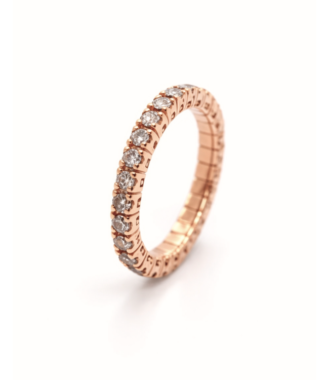 Prachtige ring van het Italiaanse merk Positano. De ring is gemaakt van 18kt roségoud en is voorzien van bruine diamanten (1.46ct). Deze ring is flexibel en dus gemaakt voor mensen met bijvoorbeeld reuma of artrose. de ringmaat is dus rekbaar en kan gemakkelijk gedragen worden. Voor meer informatie neem dan gerust contact met ons op!