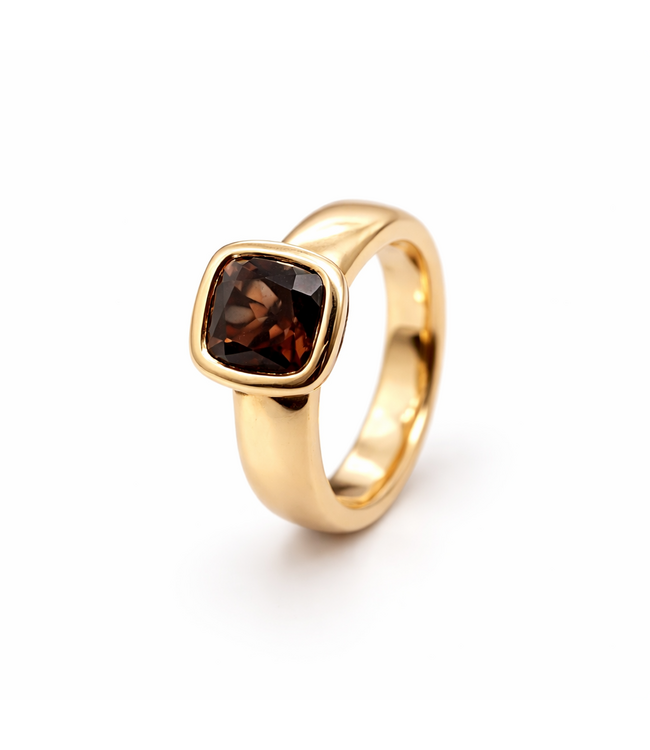 Prachtige ring van het Italiaanse merk Positano. De ring is gemaakt van 18kt geelgoud en is voorzien van een rookwarts. Deze ring is een ware eye-catcher. Voor meer informatie neem dan gerust contact met ons op!