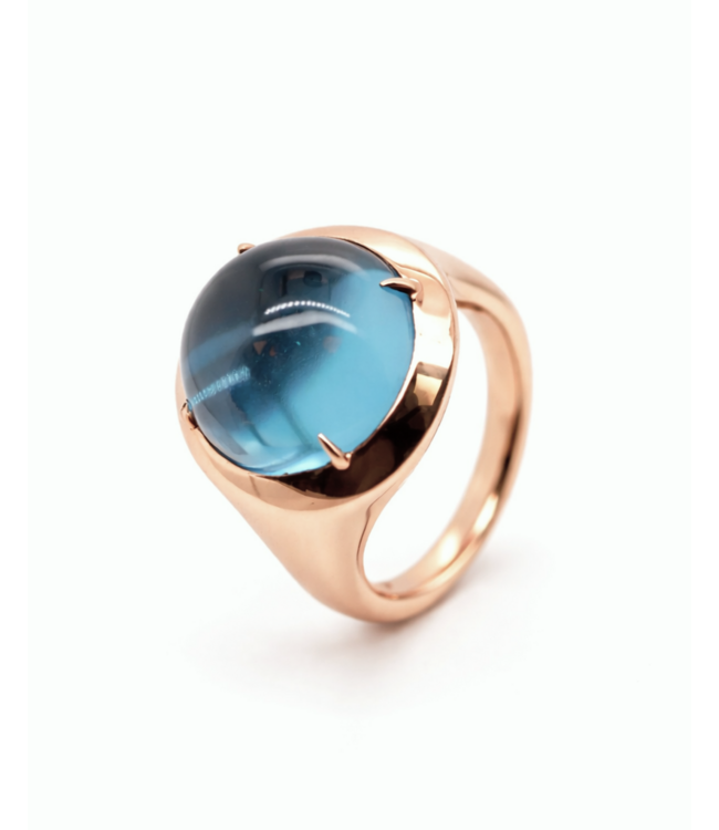 Schitterende 18 k roségouden ring van het prachtige Italiaanse merk Positano. De ring heeft een ringmaat van 55 en is voorzien van een prachtige Londen Blue Topaas (19,90)