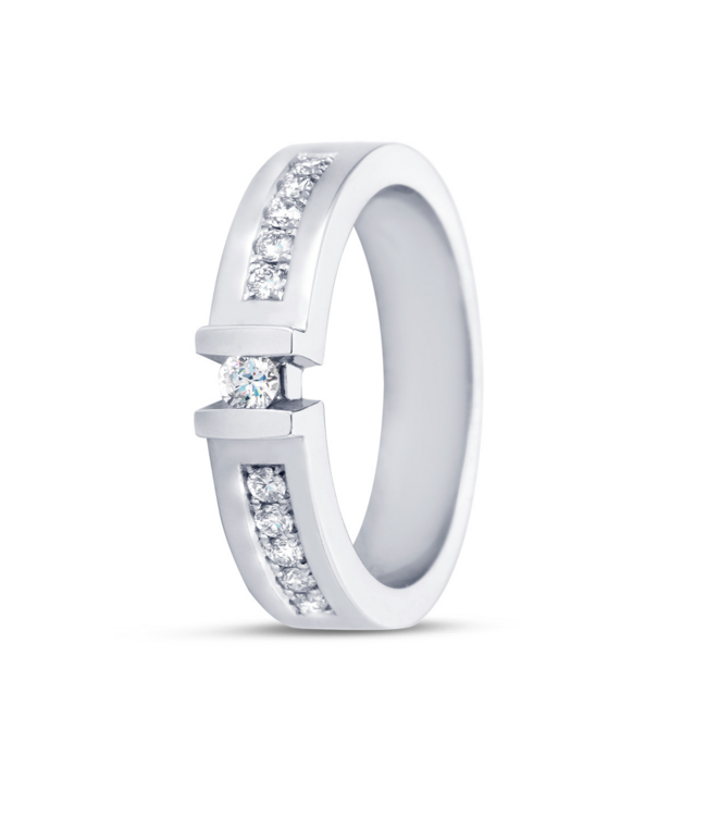 Prachtige witgouden ring van het merk R&C. De ring is gemaakt van 14kt witgoud en is bezet met pavé briljanten die prachtig zullen schitteren in het licht (in totaal 10 pavé diamanten 0.18ct.). In het midden van de ring is een briljant geslepen diamant gezet die mooi zal schitteren in het licht (0.13ct Si/river).Voor meer informatie neem dan gerust contact met ons op!