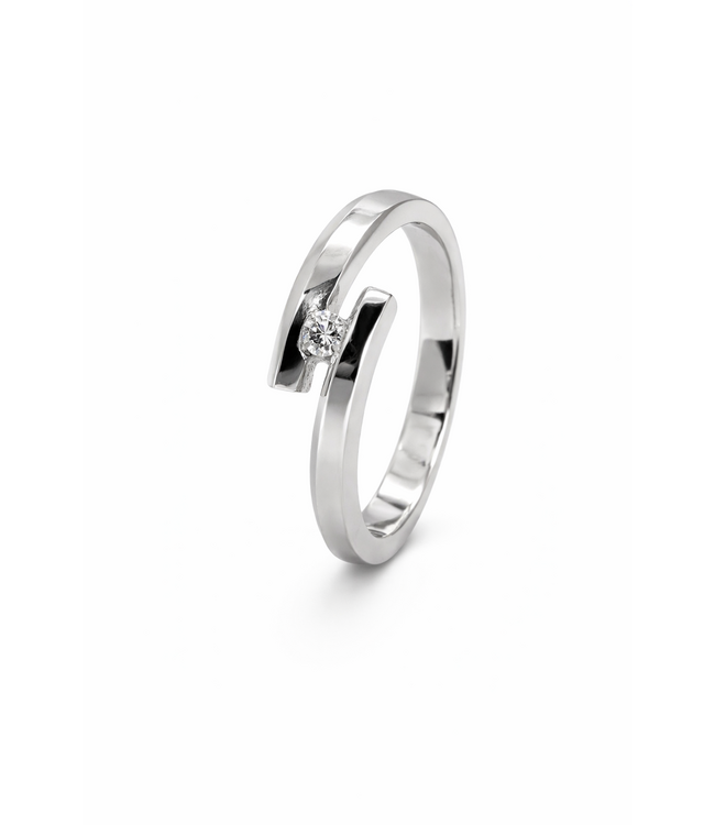 Prachtige ring van het merk R&C. De ring bestaat uit 14kt geelgoud in combinatie met 14kt witgoud. Hierdoor kan de ring mooi gecombineerd worden met zowel wit- als geelgouden sieraden. In het midden van de ring is een briljant geslepen diamant gezet die mooi zal schitteren in het licht.