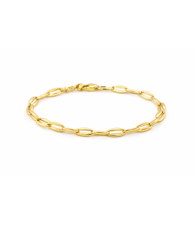 Tijdloze geelgouden armband. De armband is gemaakt van 18kt geelgoud, waardoor de kleur van de armband behouden blijft. De armband kan mooi enkel gedragen worden, maar kan ook leuk gecombineerd gedragen worden met andere armbanden. De lengte van de armband is 19 cm, maar kan op maat gemaakt worden. Voor meer informatie neem dan gerust contact met ons op!