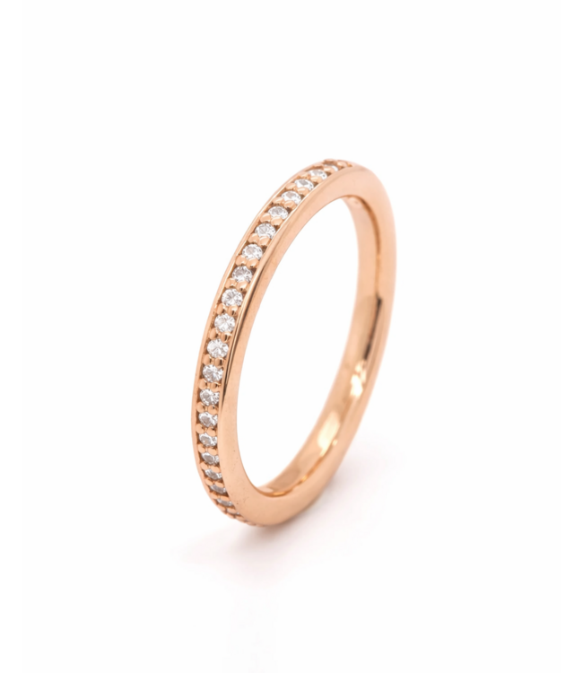 Prachtige 14kt roségouden ring met briljant geslepen diamanten (0.21 ct. TW VS). De maat van de ring is 55/17.50. De ring kan gestapeld worden met andere ringen voor een unieke ´ringparty´. De ring is ontworpen en gemaakt door onze goudsmeden en hierdoor verkrijgbaar in iedere gewenste maat. Voor meer informatie neem dan gerust contact met ons op!