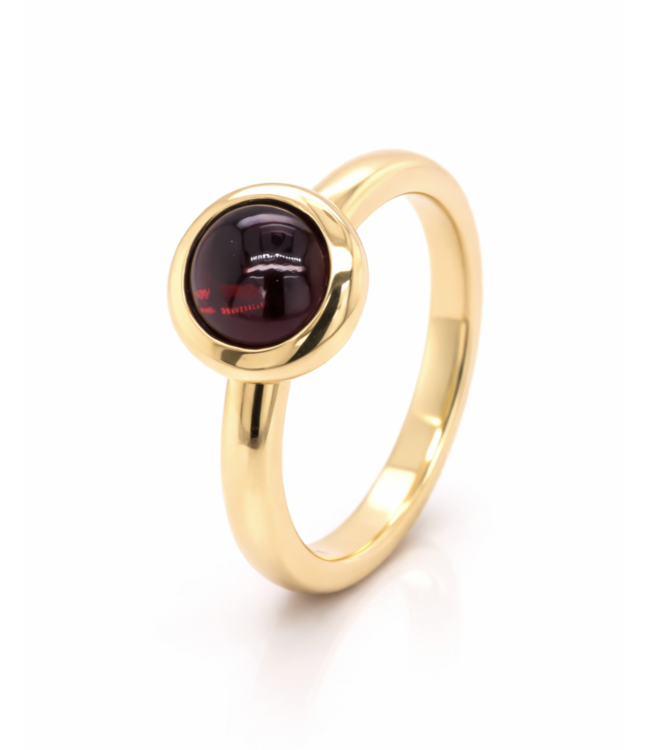 Prachtige geelgouden ring ontworpen en gemaakt door onze goudsmid Bregje. De ring is gemaakt van 18kt geelgoud waardoor deze mooi van kleur blijft. In het midden van de ring is een mooie dieprode Granaat gezet. Voor meer informatie neem dan gerust contact met ons op!