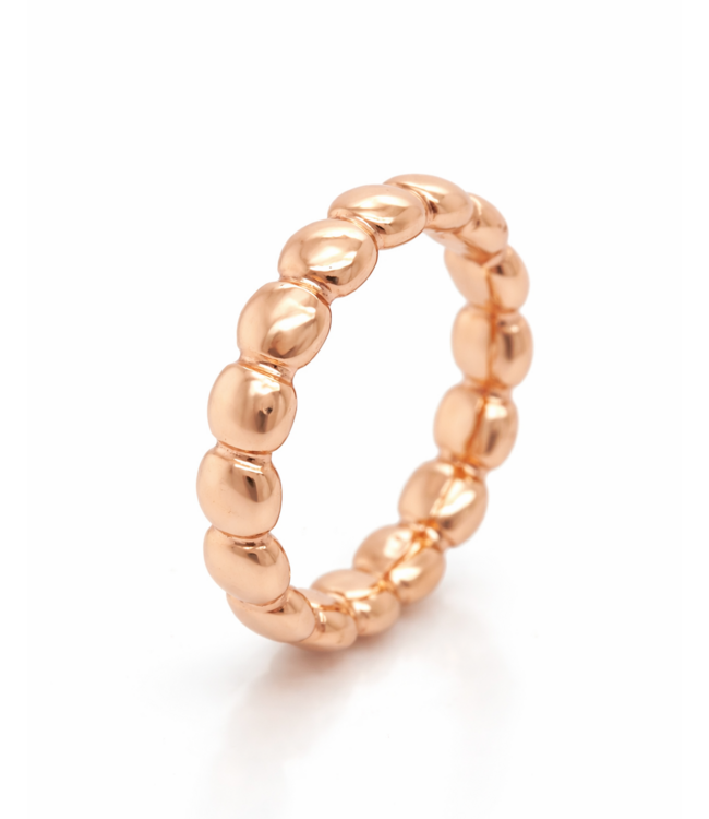 Leuke roségouden aanschuifring ontworpen en gemaakt door onze goudsmid Bregje. De ring is gemaakt van 18kt roségoud waardoor deze mooi van kleur blijft. De ring bestaat uit ovaalvormige cirkels, vandaar de naam Bubbles. De ring kan goed gecombineerd gedragen worden met andere ringen. De maat van de ring is 54, maar kan in andere maten gemaakt worden. Voor meer informatie neem dan gerust contact met ons op!