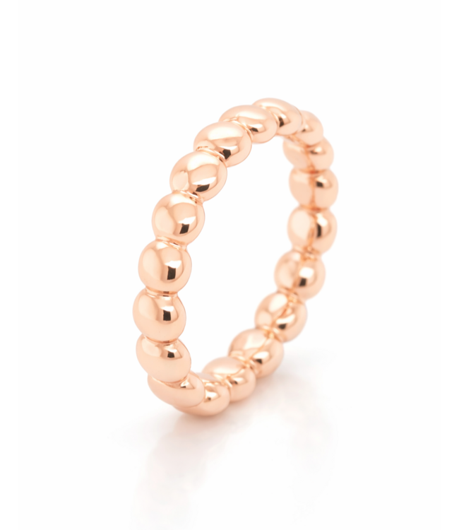 Leuke roségouden ring ontworpen en gemaakt door onze goudsmid Bregje. De ring is gemaakt van 18kt roségoud waardoor de kleur mooi behouden blijft. De ring bestaat uit ovaalvormige cirkels, vandaar de naam BUBBLES. De ring kan alleen gedragen worden, maar is zeker ook geschikt om gestapeld te dragen met andere ringen. De maat van de ring is 54, maar kan op maat gemaakt worden. Voor meer informatie neem dan gerust contact met ons op!