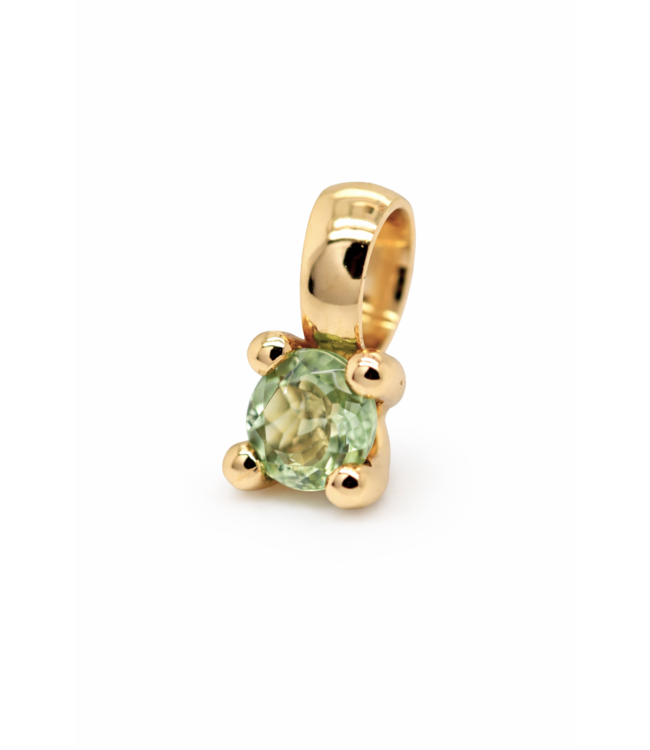 Deze prachtige hanger gemaakt van 18K geelgoud, uit de Lily collectie van Roemer by Bregje In de ring is een gefacetteerde mint groene toermalijn gezet. De ring is ontworpen en gemaakt door onze eigen goudsmid Bregje.  De hanger kan aan verschillende geelgouden kettingen worden gedragen. Wilt u meer weten over wat wij voor u kunnen doen? Neem dan gerust contact met ons op, of kom lang in onze mooie winkel in Roosendaal! onze winkel is makkelijk te bereiken vanaf, Breda, Rotterdam, Bergen op zoom en Zeeland.