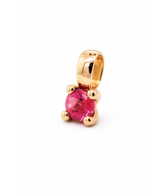 Prachtige geelgouden hanger Lily ontworpen en gemaakt door onze goudsmid Bregje. Zij heeft de hanger gemaakt van 18kt geelgoud, waardoor de hanger mooi zijn kleur behoudt. Bregje houdt enorm van kleurstenen, en heeft daarom een mooi geslepen roze Toermalijn (7.5mm) gezet in de hanger. De hanger kan goed gehangen worden aan een geelgouden ketting. Voor meer informatie neem dan gerust contact met ons op!