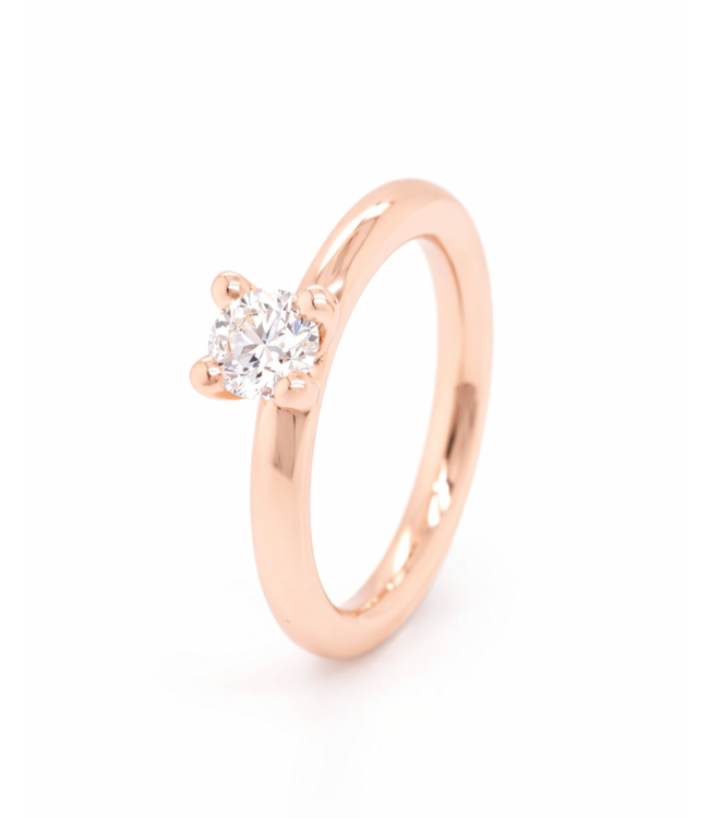 Schitterende rosegouden ring met solitair zetting, ontworpen en met liefde gemaakt door onze eigen goudsmid Bregje. De ring, genaamd Lily, heeft een breedte van 3mm en schittert met een facet geslepen diamant van 7mm. Deze unieke creatie is uitgevoerd in 18K rosegoud. Met een ringmaat van 54 is deze Lily een pronkstuk, maar geen zorgen: alle ROEMER by Bregje ringen kunnen volledig op maat gemaakt worden.