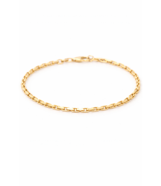 Tijdloze geelgouden ankerarmband. De armband is gemaakt van 14kt geelgoud, waardoor de kleur mooi behouden blijft. De armband heeft een ankerschakel die gediamanteerd geslepen waardoor hij meer schittert. De schakel heeft een dikte van 2.5mm, en een lengte van 21cm. Voor meer informatie neem dan gerust contact met ons op!