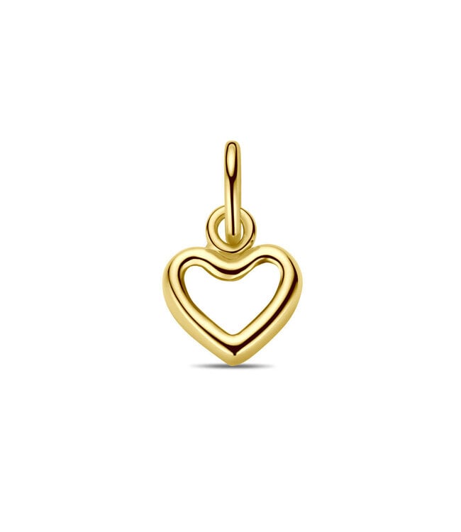 14k Geelgouden hanger uitgevoerd met een hart. De hanger heeft een totale hoogte van 11mm.