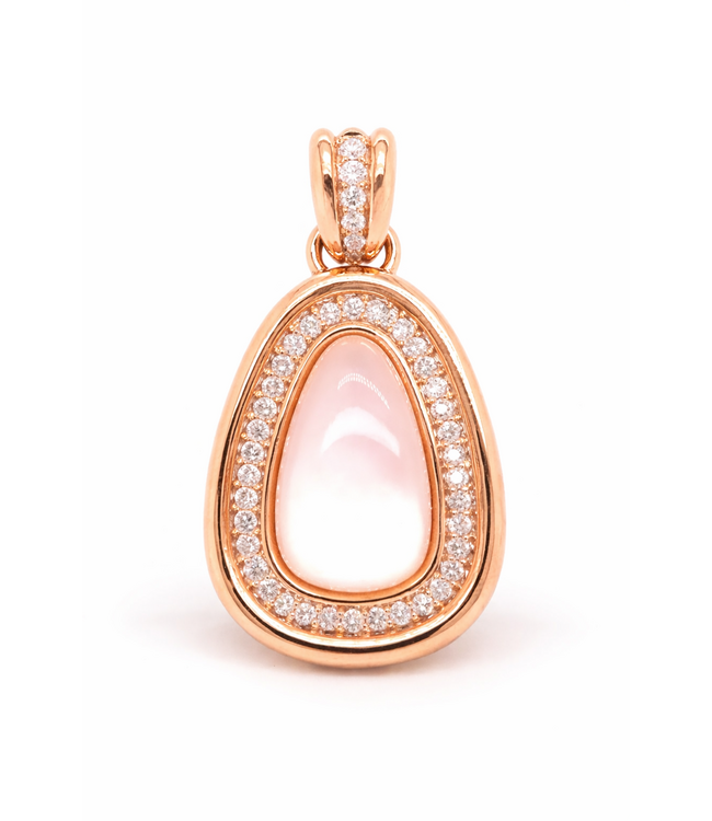 Tijdloze roségouden hanger. De hanger is gemaakt van 18k goud, waardoor de kleur van de hanger behouden blijft. De hanger is voorzien van 0.55ct briljant, waardoor hij mooi schittert aan de hals. De hanger is 23,4mm breed en heeft een lengte van 41,8mm. Voor meer informatie neem dan gerust contact met ons op!