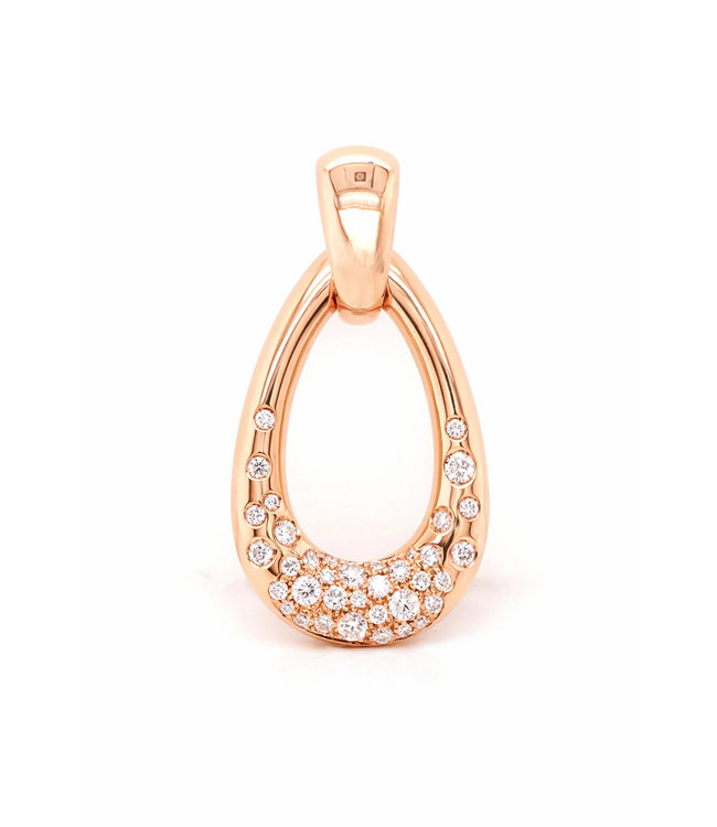 Tijdloze roségouden hanger. De hanger is gemaakt van 18k goud, waardoor de kleur van de hanger behouden blijft. De hanger is voorzien van 0.55ct briljant, waardoor hij mooi schittert aan de hals. De hanger is 14,7mm breed en heeft een lengte van 30,9mm. Voor meer informatie neem dan gerust contact met ons op!