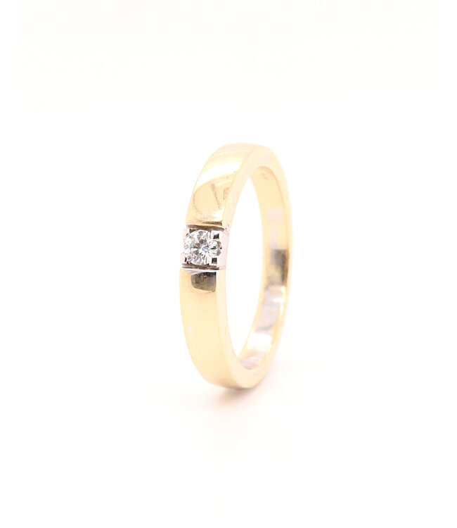 Geelgouden Riviera ring met diamant 0.10 ct. De ring is gemaakt van 14kt geelgoud, waardoor de kleur van het ring behouden blijft. De ring kan mooi enkel gedragen worden, maar kan ook leuk gecombineerd gedragen worden met andere ringen. De maat van de ring is 54, maar kan op meerder maten besteld worden. Voor meer informatie neem dan gerust contact met ons op!