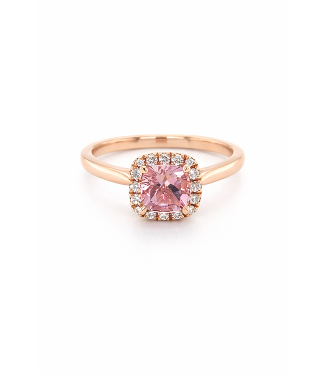 Rosegouden ring met cushion roze morganiet