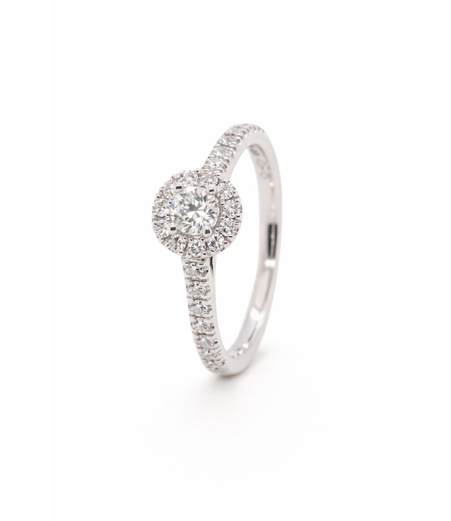 Schitterende witgouden ring met natuurlijke diamant briljant geslepen 0.67ctTW Si, middensteen 4mm. Perfect om lot te dragen, maar er kan ook een zijring naast gedragen worden, omdat de zetting hoger is. Ook geweldig als bijzondere verlovingsring. Maat 55