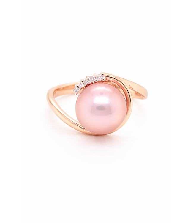 Elegante 14k roségouden ring. De ring is voorzien van 0.035ct briljant geslepen diamant. In de ring zit een zoetwaterparel met paarse gloed. Deze ring is mooi te combineren met de bijbehorende hanger en oorhangers. Voor meer informatie neem gerust contact met ons op of kom langs in de winkel!