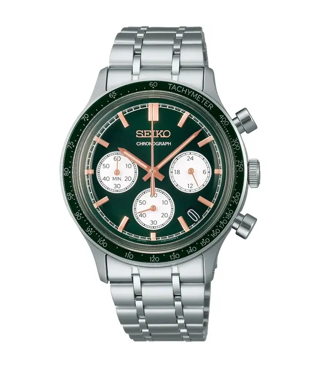 De Seiko SSB481P1 Chronograaf voor heren combineert sportieve functionaliteit met een verfijnde, moderne uitstraling. De roestvrijstalen kast en stalen schakelband zorgen voor een stevige en stijlvolle basis, terwijl de groene wijzerplaat het horloge een onderscheidend karakter geeft. Dit model is uitgerust met een betrouwbaar quartz-uurwerk (kaliber 8T63) en beschikt over een chronograaf, datumweergave, 24-uurs aanduiding en kleine seconde. De stopwatch meet tot 60 minuten in stappen van 1/5 seconde, en dankzij de tachymeter op de lunette is het horloge extra praktisch in gebruik. Met Hardlex glas en een waterbestendigheid van 5 bar is de SSB481P1 geschikt voor dagelijks gebruik.