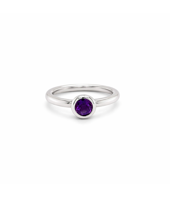 14kt witgouden ring met in het midden een Amethist. De ring kan alleen worden gedragen, maar kan ook goed gecombineerd gedragen worden met andere ringen. Voor meer informatie neem dan gerust contact met ons op! De ringmaat is 54.